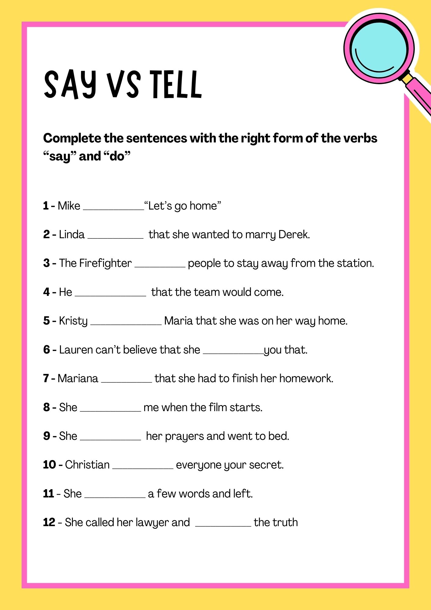 When it comes to identifying the difference between “say” and “tell”, you have to remember the collocations related to both verbs